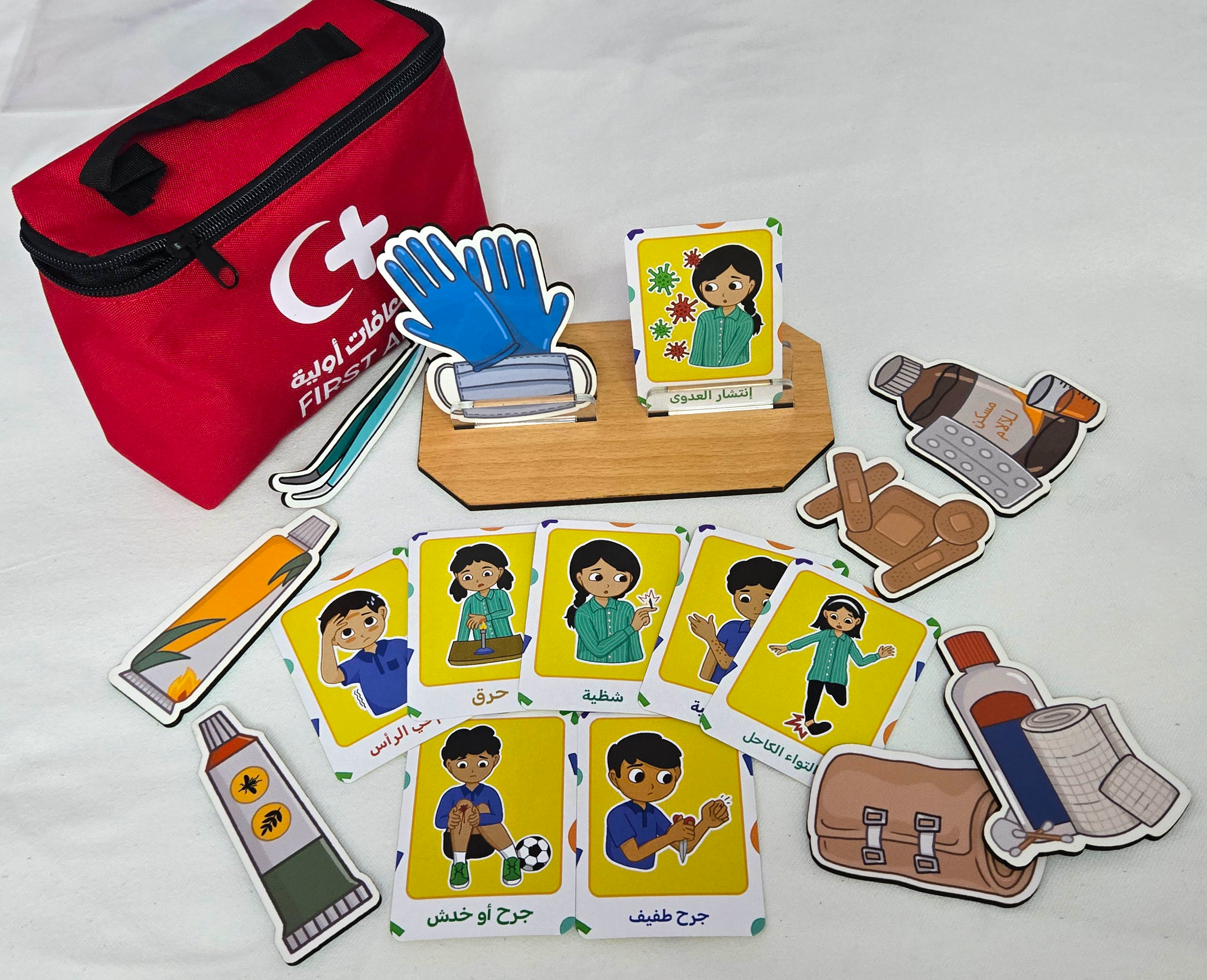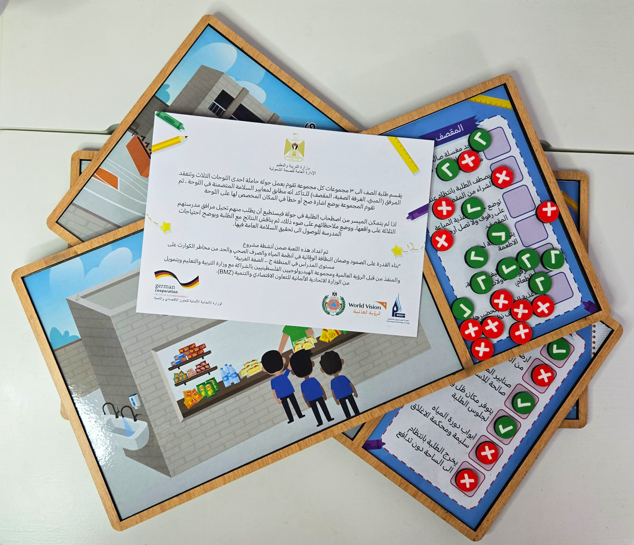 A project I’ve worked on where I was responsible for everything from designing, producing, assembling and packaging 4 different educational games to distributing hundreds of copies of them to 34 schools across the West Bank. These games focused on “DRR and WASH Educational Materials with Special Emphasis on Pandemic Preparedness and Readiness”